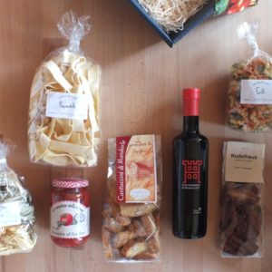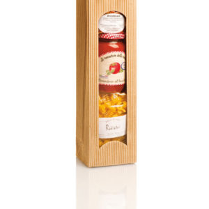 Inhalt*: Nidi Hartweizen bunt, 250 g Pappardelle Natur, 250 g Tomatensoße regionaler Herstellung, 340 g (Bild abweichend) Cantuccine, 200 g