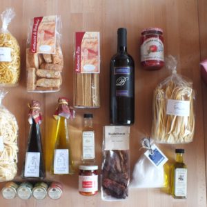 Inhalt*: Macceroni Hartweizen, 500 g Nidi Hartweizen, 500 g Cantuccine, 200 g Balsamico Essig, 200 ml Olivenöl, 200 ml Moutarde